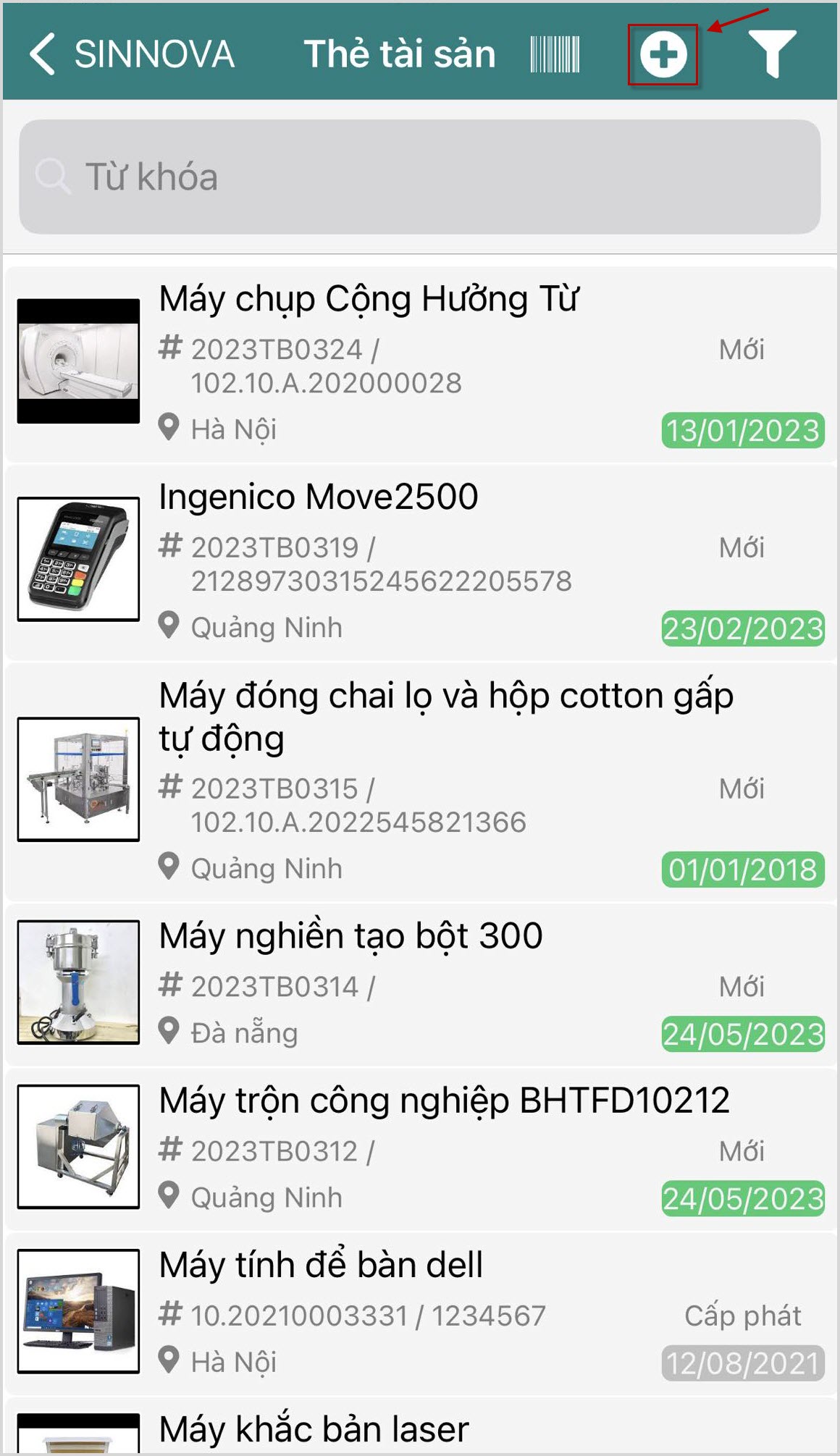 1. Nhấn để thêm mới tài sản.