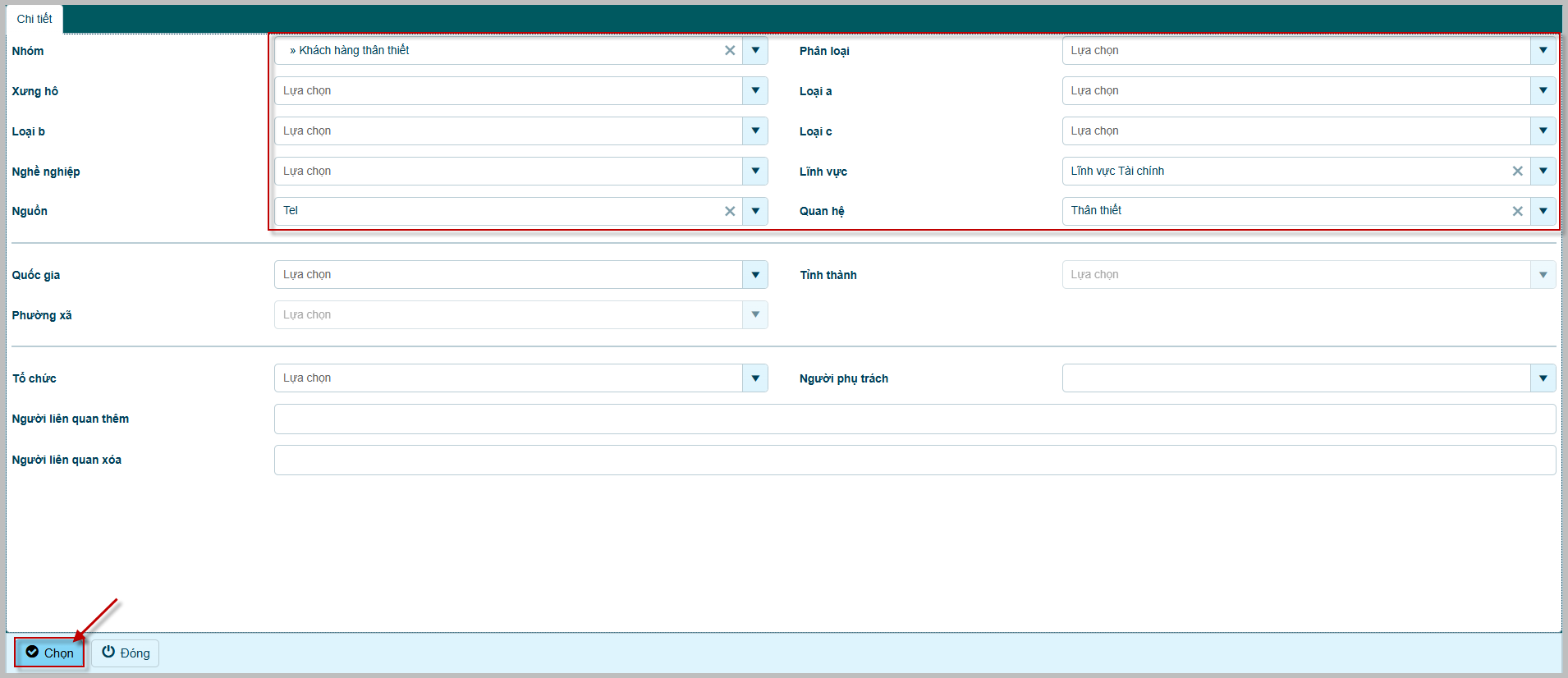 4. Nhấn "Chọn" để lưu lại các thông tin đã chỉnh sửa đối với các khách hàng tiềm năng đã chọn.