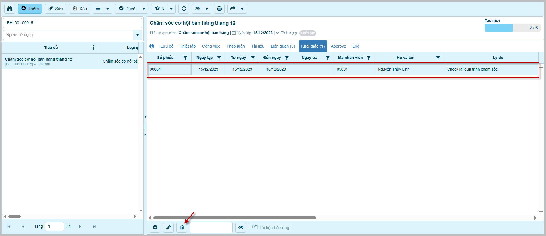 2. Chọn bản ghi quy trình cần sửa thông tin khai thác.