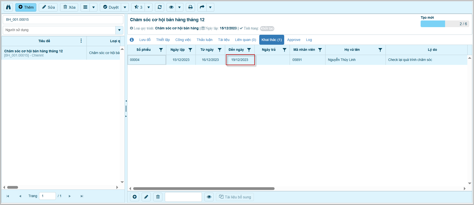 5. Cập nhật các thông tin cần sửa, thao tác nhập liệu tương tự thao tác nhập liệu của thêm mới khai thác quy trình.